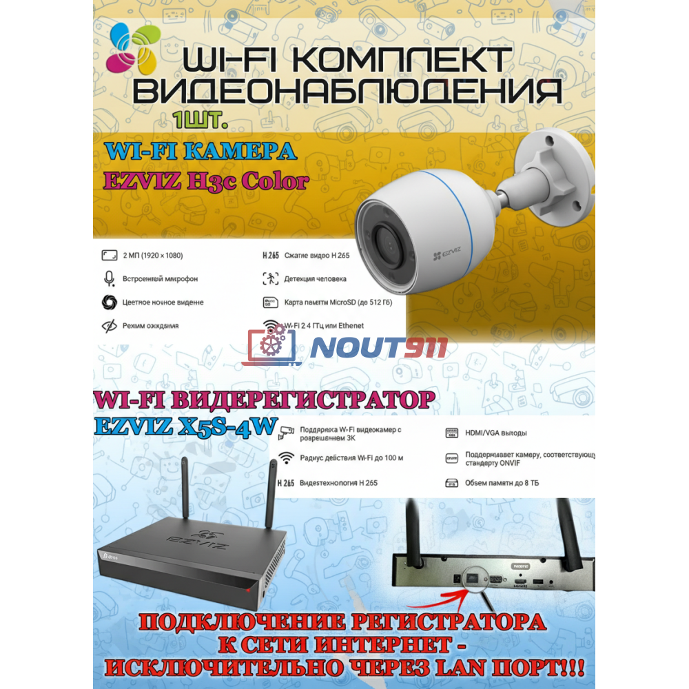 Представляем вашему вниманию передовой Wi-Fi комплект видеонаблюдения EZVIZ на 1 видеокамеру с разрешением 2 Мп 1080P, включающий модели CS-H3c Color и CS-X5S-4W. Эта система обеспечит высокую степень безопасности вашего дома или офиса благодаря расширенным функциональным возможностям и передовым технологическим решениям.