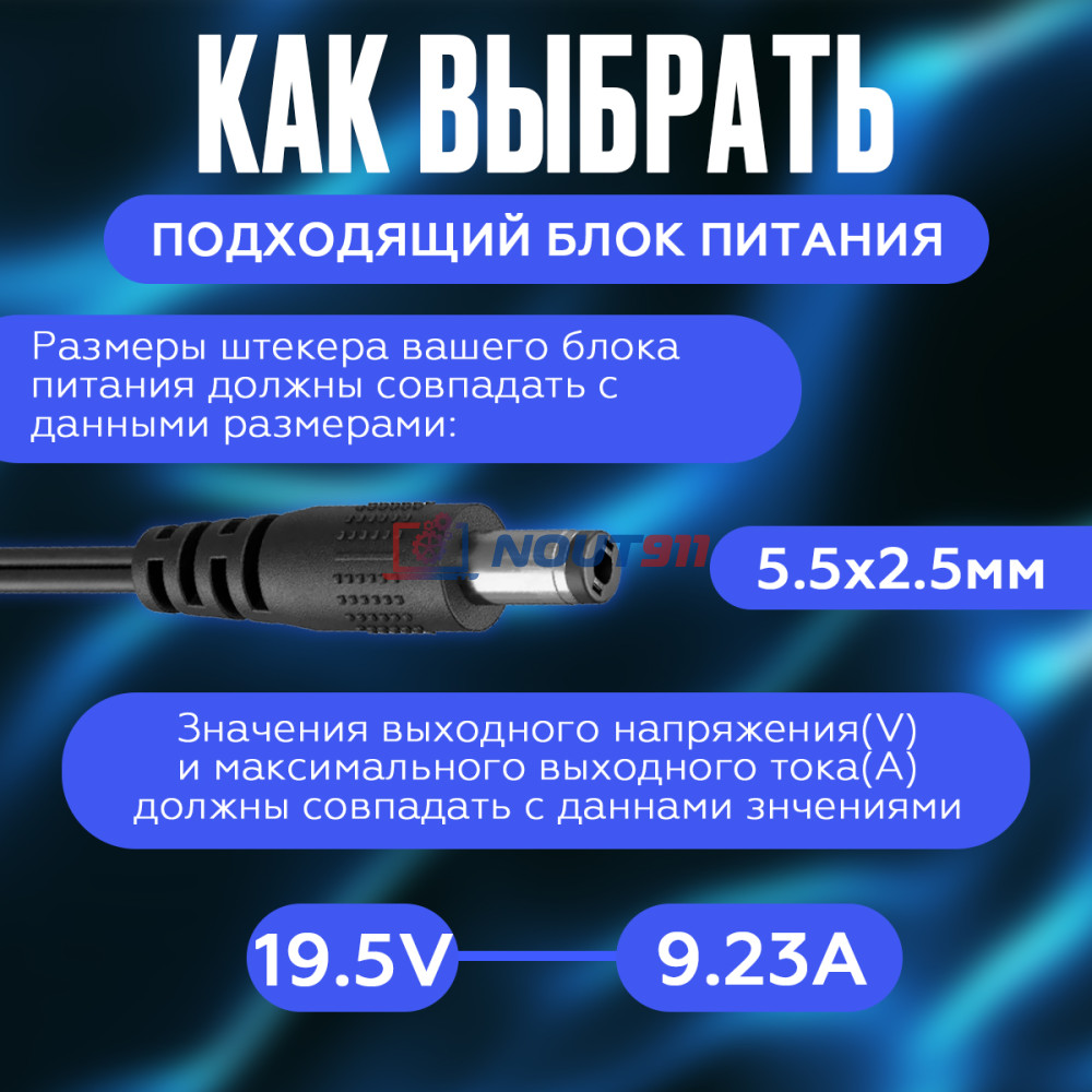 Высокая производительность: С мощностью 180 Вт, этот блок питания обеспечит стабильную мощность для самых требовательных задач, поддерживая бесперебойную работу вашего ноутбука.